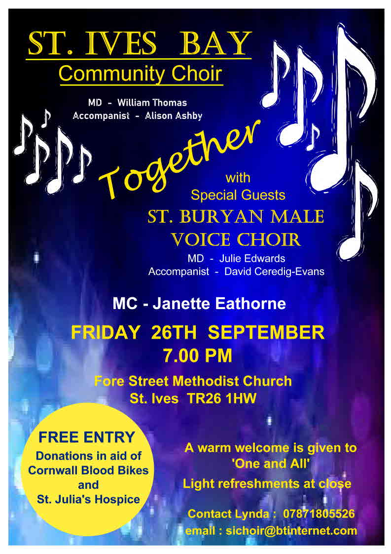 St Buryan Combine Concert with St Buryan Male Voice Choir on Tuesday 10th June